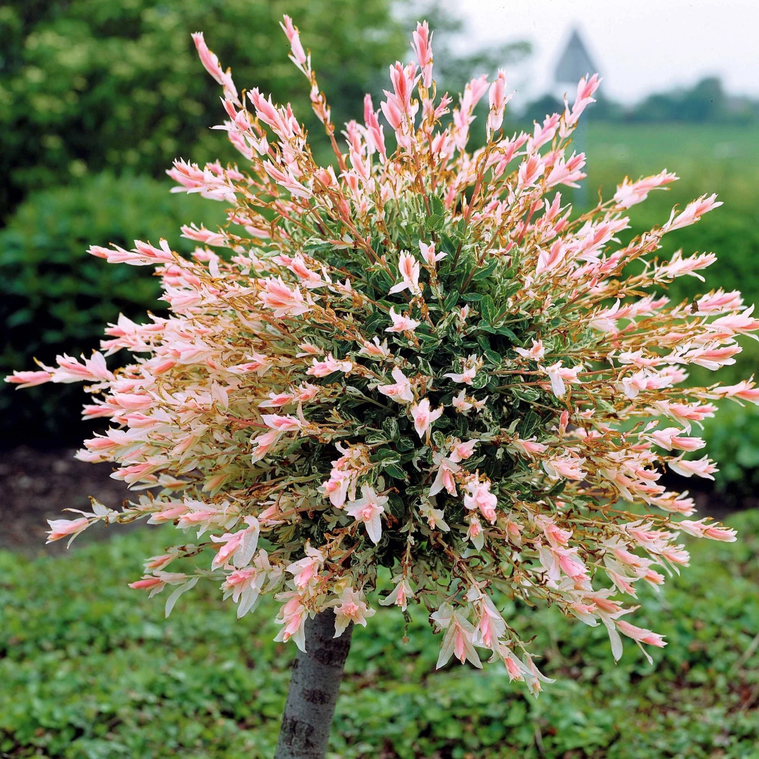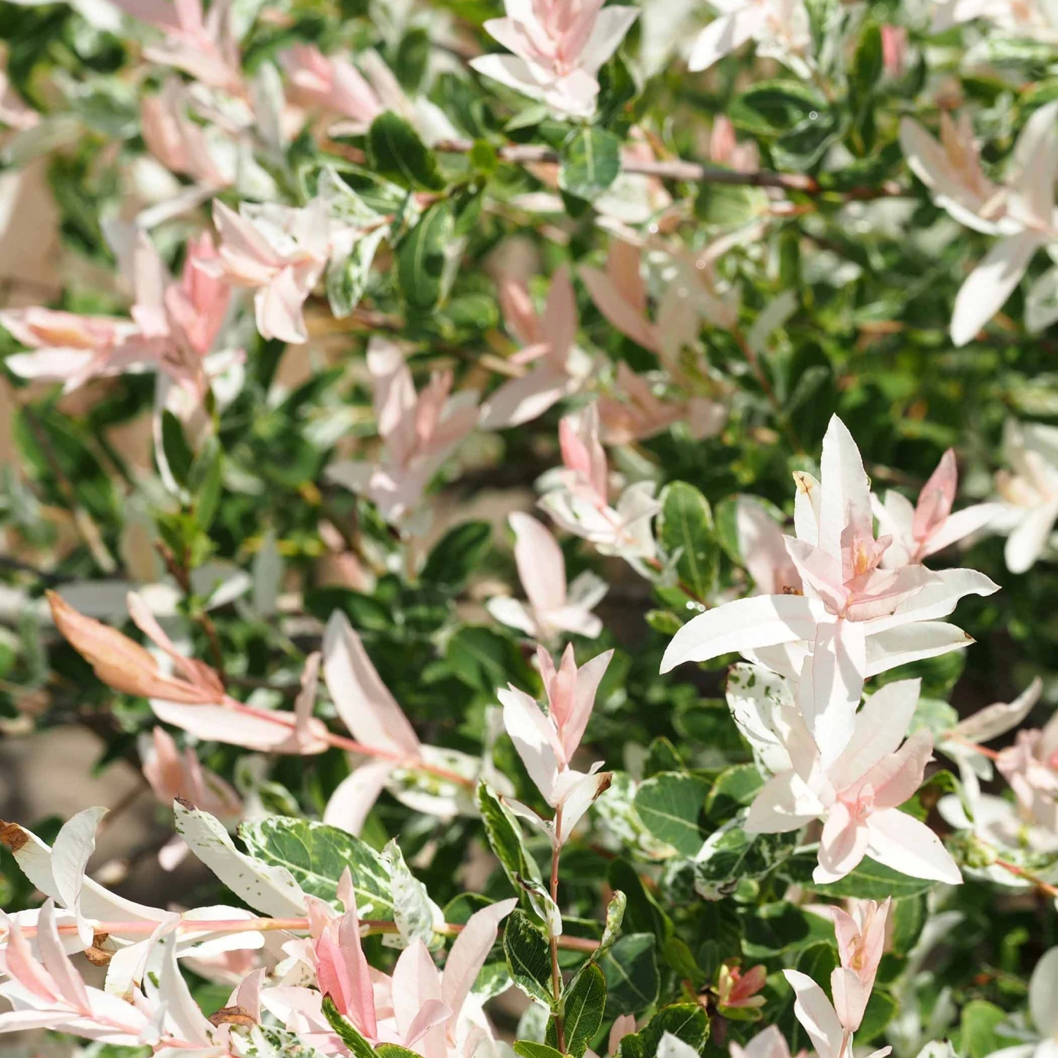 Le Saule Crevette ou Salix integra Hakuro Nishiki provient du Japon. Il s’agit d’un arbuste ornemental qui se distingue grâce à leurs belles feuilles singulières. Durant la saison printanière, il est agrémenté par un joli feuillage rose crevette, d’où son appellation. Pendant la période estivale, il devient vert petit à petit, tout en présentant des taches teintées de blanc crème. De plus, il semble fleurir. Cultivée en pépinière, cette plante apporte une touche chic et harmonieuse à votre décor.
